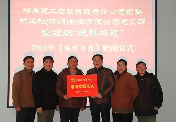 系統黨委向統籌共建單位贈閱黨刊 時間:2009-12-226179 12月18日,建控公司黨委積極與外資企業恒寶利(揚州)公司黨支部開展國有民營黨組織“統籌共建”活動,向其贈閱了2010年《揚州日報》以及《黨章》等黨報黨刊學習資料,并與團員青年、入黨積極分子開展座談互動交流。