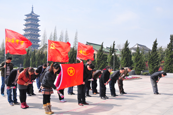 總部開展祭掃革命烈士墓活動 時間:2013-04-034660 4月3日,總部機關黨支部和團委聯合開展祭掃革命烈士墓活動,總部機關、華建置業20余名同志參加。紀委副書記、黨辦主任陳緒寶主持活動,副總經理兼總工程師程杰帶領大家向烈士紀念碑三鞠躬,并敬獻了鮮花,隨后大家共同參觀了烈士英雄事跡展。