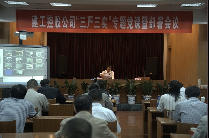 黨委書記陸金龍與大家共同分享了踐行“三嚴(yán)三實”的體會,并對本系統(tǒng)“三嚴(yán)三實”專題教育作動員部署。陸金龍書記在講話中,重點闡述了“三嚴(yán)三實”的科學(xué)內(nèi)涵和重大意義,講清了“不嚴(yán)不實”的具體表現(xiàn)和嚴(yán)重危害,明確落實了系統(tǒng)踐行“三嚴(yán)三實”的具體做法,要求注重統(tǒng)籌兼顧,以確保揚州建工控股系統(tǒng)經(jīng)濟健康發(fā)展。