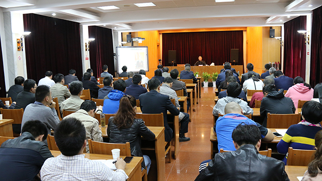 會上,蔣伏虎教授詳細介紹了市第七次黨代會報告的主要內容,重點圍繞奮力譜寫好中國夢第一個百年夢想的揚州篇章,對今后五年我市經濟社會發展藍圖,對“邁上新臺階、建設新揚州”的主題,“經濟強、百姓富、環境美、社會文明程度高”的新揚州等作了詳細解讀。他強調,要抓住黨代會的主題和精神實質,宣傳好落實好黨代會精神,做好三個方面工作:一是學習黨代會文件,重在領會精神實質;二是實現發展藍圖,重在主動承擔責任;三是加強黨的建設,重在堅強有力領導。